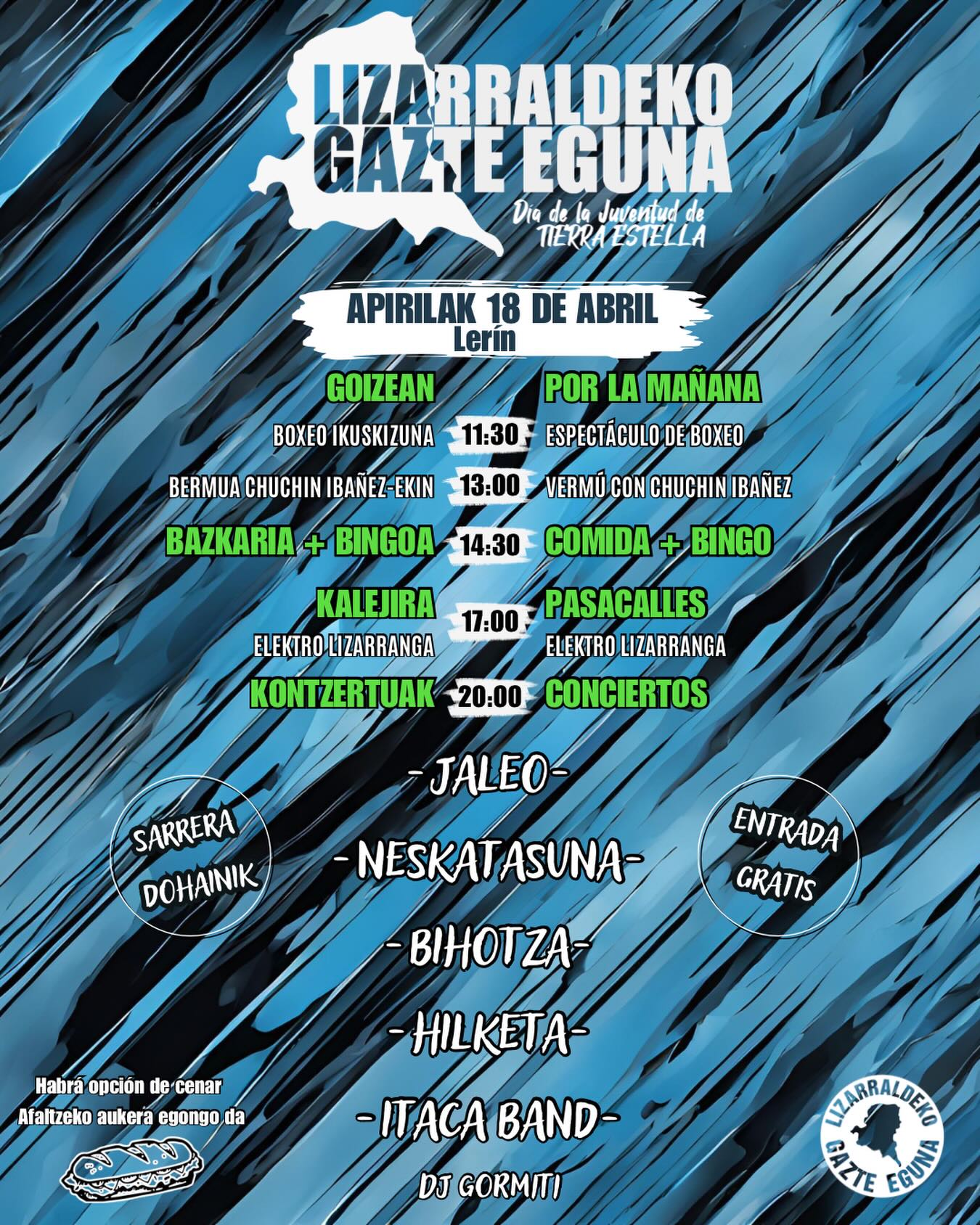 ConciertoLizarraldeko Gazte EgunaInstagramviernes 17 de abril, 2026LugarLerínEVENTO PUBLICADO POR NAFARROCK